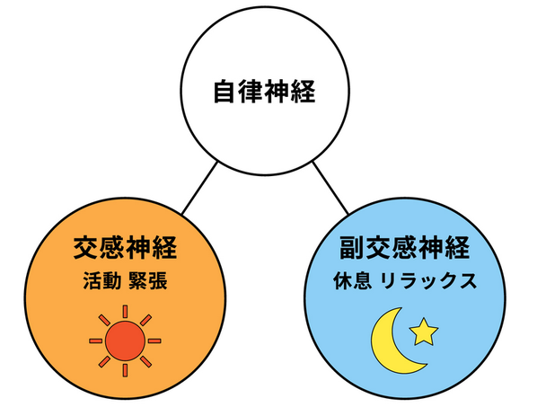「自律神経」とは、交感神経と副交感神経の2つの神経のことです。交感神経は、身体の機能を活動的にする、いわゆる“アクセル”であり、副交感神経は、身体の機能を落ち着かせる働きをする“ブレーキ”です。