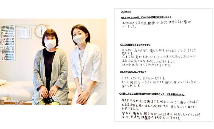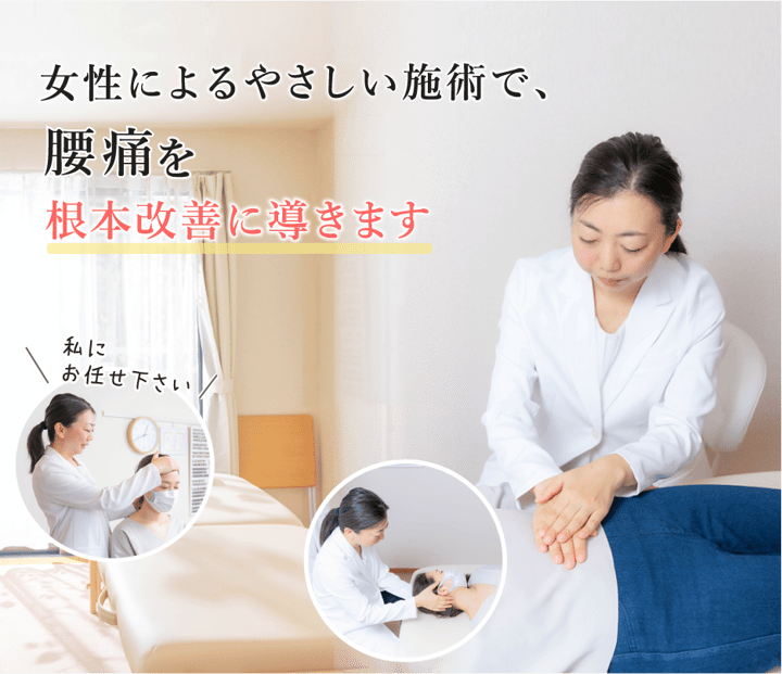 「身体に負担の少ない、痛くない施術でよくなりたい。」「女性の整体師に担当してほしい。」という方に、ぜひ受けていただきたいです。